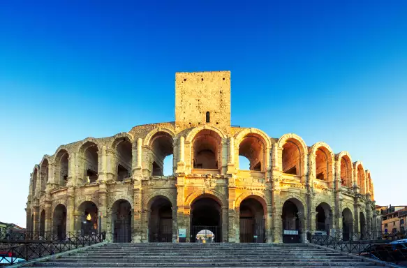 You'll awake under the azure skies of deepest Provence amid the warm stone colours of Arles, many of whose historic monuments are UNESCO World Heritage Sites. Although small in size, it was the key stronghold on the Roman road to Spain, one of the empire’s richest possessions. Seagoing ships could reach here, and the city became a regional capital, briefly ruling over Gaul, Spain and Britain.