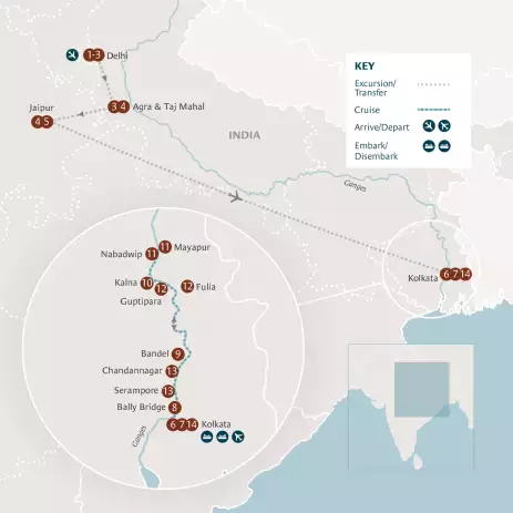 - Savour a seven-night cruise aboard the charming MV Bengal Ganga on a round trip from/to Kolkata along the Hooghly River - a tributary of the Ganges River in West Bengal - and witness local life from a riverside perspective.