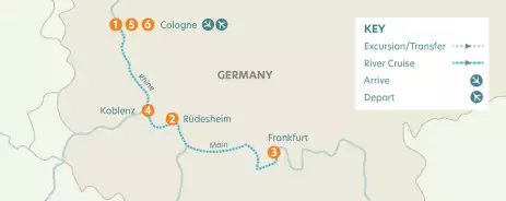 Travel to Cologne and transfer to your ship.
