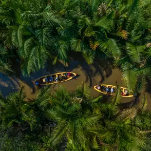 We'll stop at the riverside town of Cai Be for lunch at the elegant La Longanier Restaurant set amidst lush fruit trees by the river before continuing to Can Tho. Arriving mid-afternoon, we'll board our ship: the Victoria Mekong. After being welcomed by the professional and friendly crew, you'll be shown to your cabin with time to settle in as the ship sets sail towards Long Xuyen. Once you've unpacked, why not enjoy a sundowner as the sun sets over the Hau River? This evening, we'll be treated to a traditional Southern Vietnamese folk music performance, known as Don Ca Tai Tu, before a delicious Vietnamese buffet dinner - the perfect welcome to life on board the Victoria Mekong cruise.