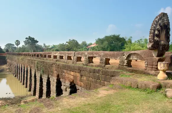 This morning, say a warm goodbye to the wonderful crew as we begin the next chapter of our Cambodian adventure. Travel by coach through the countryside, taking in scenes of rural life along the way. A highlight of the journey is a stop at the historic Kampong Kdei Bridge, an impressive Angkor-era structure built during the reign of King Jayavarman VII.