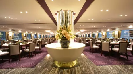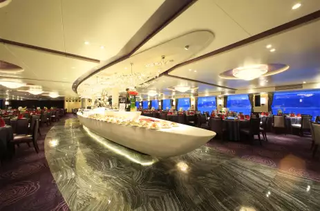 Lunch and dinner in the main restaurant offers a buffet of predominantly Chinese dishes, including regional fare reflective of the day's destination along with some Western choices. For a more exclusive dining experience, the VIP restaurant* offers buffet dining in a more intimate setting with some a la carte options** in the evening.