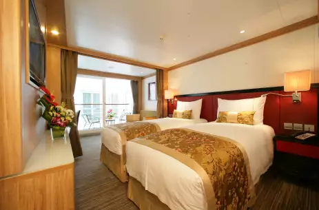 Located on the promenade deck, these Deluxe cabins measure 28 square metres, featuring a private balcony.