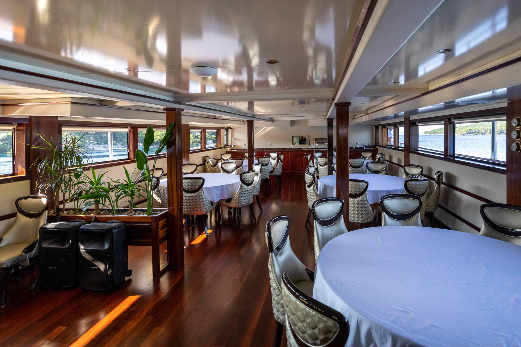 Our simple, yet elegant, restaurants are the heart of the ship with tables of up to 8. While the refined and tasteful décor of our restaurants varies across our yacht fleet, the ambience does not. We're an informal bunch so you can leave the ball gowns and tuxedos at home, shorts and t-shirts are the order of the day. There's no dress code and no seating plan.