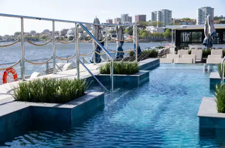 Our open-air Sun Deck is the place for relaxation. It's home to a refreshing splash pool and a selection of comfortable chairs and sun loungers - both in and out of the shade. Here, you're sure to find the perfect spot to crack open that book you've been meaning to read - perfectly paired with a cool glass of wine or beer from the sun deck bar, of course.