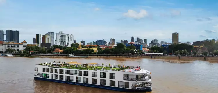 Designed with a low draft - meaning the ship sits higher in the water and can navigate shallower channels - the Riviera Alba is perfectly suited to explore the captivating waterways between Saigon and Siem Reap. The ship’s refined interiors, panoramic windows, and open deck spaces invite guests to unwind and take in the ever-changing scenery of the Mekong River.